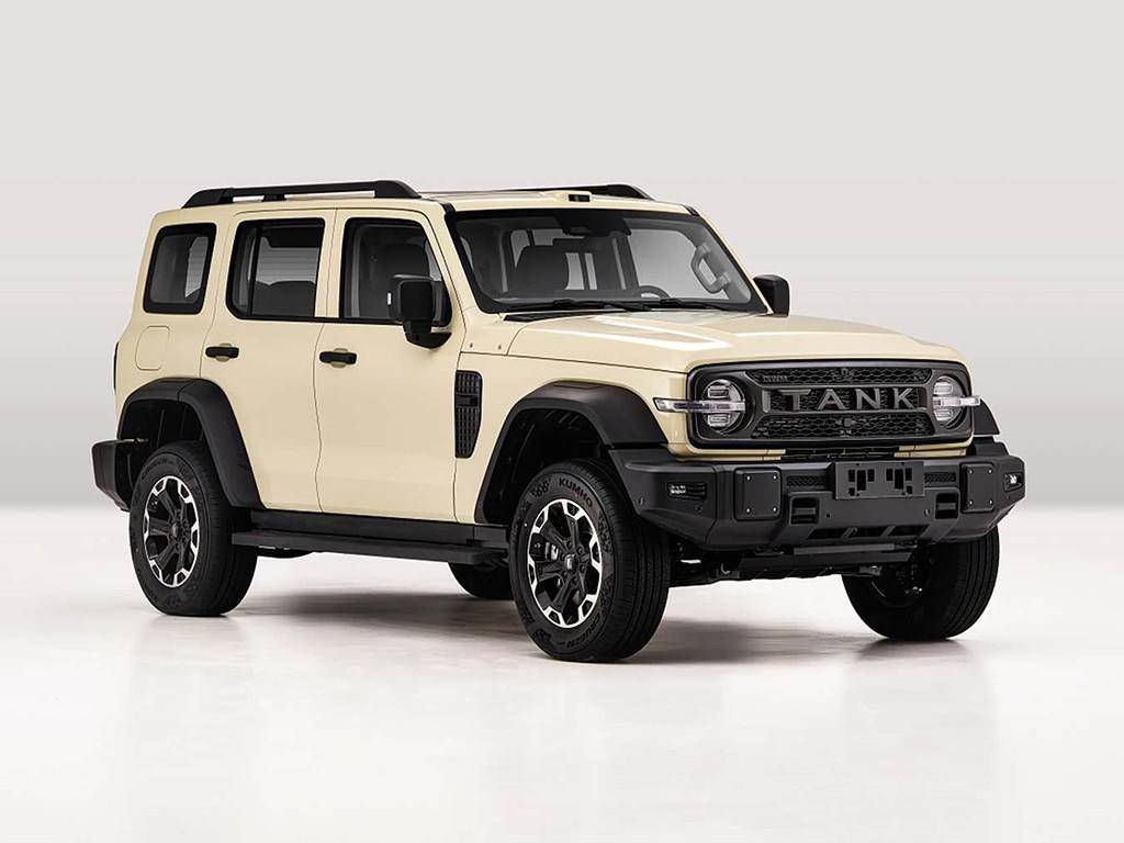 从申报图来看,新款坦克300在保留经典圆形大灯的同时,换装了全新的中网造型,车标也由原先的“坦克”图形标识更换为“TANK”字母标识,视觉上更加简洁大气。前保险杠造型更加粗犷,翼子板处增加了鲨鱼鳃装饰,机舱略有加长,整体姿态更显威猛。