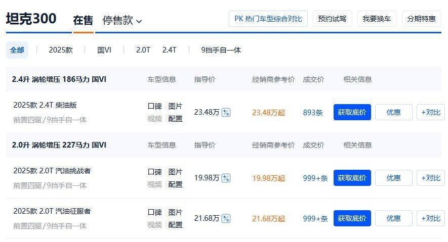 第一,定价策略。 现款坦克300燃油版起售价在20万元左右,插混版预计会高出3-5万元。如果Hi4-Z版本能够将起售价控制在25万元以内,将具备极强的市场竞争力。而Hi4-T版本若定价在28万元左右,对比同级别的方程豹、捷途等竞品,依然有品牌和口碑优势。