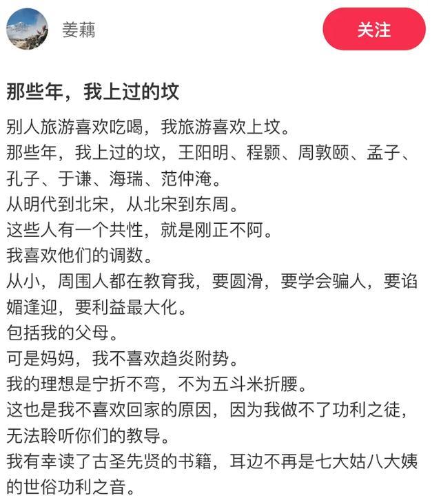 有人说,自己欣赏的从来都是那些刚正不阿的人。正因为读了古圣先贤的文字,才听不得世俗功利之音。