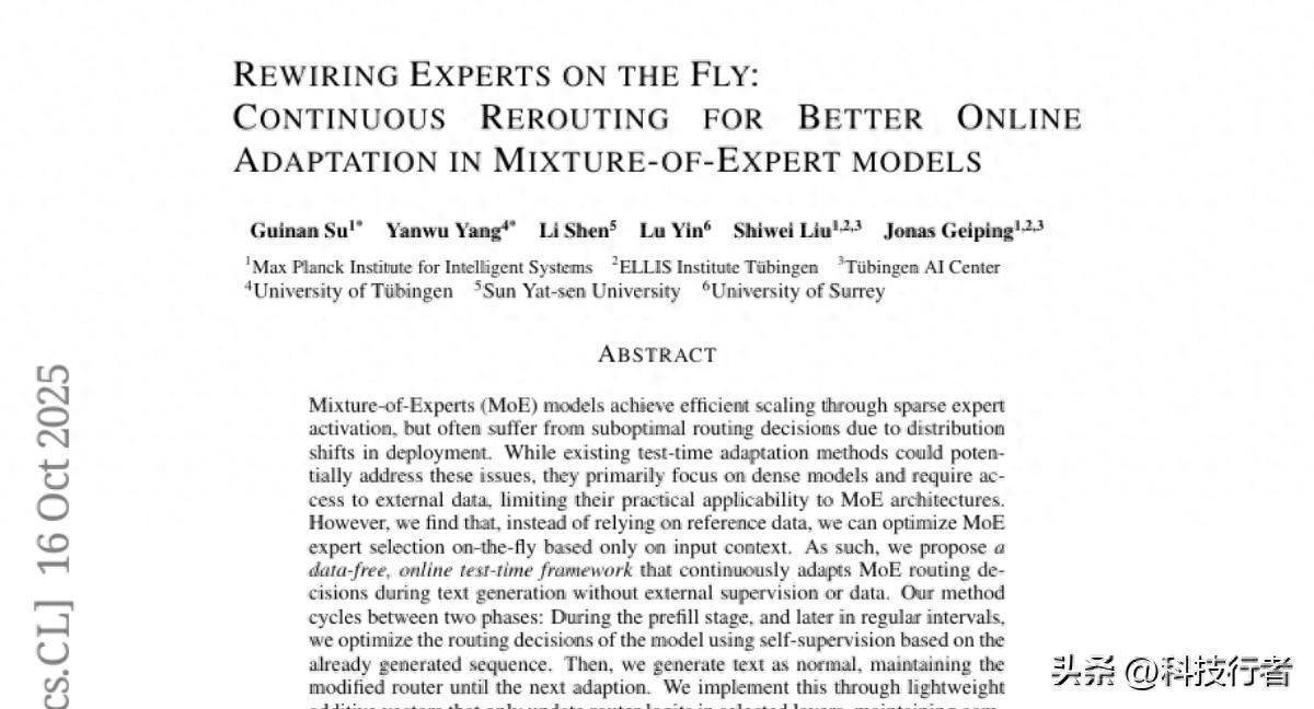 苏贵楠团队的研究就像给AI的大脑装上了一个"即时重新布线"系统。这个系统能让AI在处理问题的过程中,实时观察自己的表现,然后动态调整专家的选择策略。最神奇的是,这个过程完全不需要外部数据或复杂的检索系统,AI就像具备了自我反思和自我调整的能力。